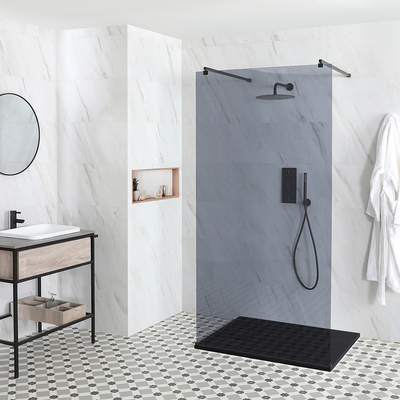 Donnez du cachet à votre salle de bain avec la douche italienne en îlot et en verre fumé Nox-Luna, fournie avec un receveur à effet texturé et une bonde à écoulement rapide. Le receveur se décline dans un choix de finitions – anthracite, gris clair et blanc – sélectionnez simplement la taille de la cabine et la finition du receveur parmi les options déroulantes ci-dessus.D’un design en îlot qui permet un accès facile des deux côtés, cette douche italienne est dotée de verre fumé d’une épaisseur de 8 mm, solide et haut de gamme. La paroi d’une hauteur de 195 cm est sécurisée par deux bras stabilisateurs à la finition noir mat pour un look chic et tendance. Le receveur de douche léger et durable est doté d’une finition texturée, au toucher doux et agréable. Sa fine épaisseur, de 3 cm, facilite l’accès à la douche. Associez-la à l’un de nos kits de douche Nox pour un look contemporain dans votre salle de bain et une expérience de douche luxueuse. Caractéristiques de la douche italienne Nox-Luna: Choix de tailles du receveur pour un agencement parfait Choix de finitions du receveur de douche – anthracite, gris clair et blanc Design traversant – accès gauche et droite Profilés noirs pour un look contemporain Verre trempé de 8 mm – gage de sécurité et de durabilité Verre fumé luxueux Design sans cadre minimaliste Hauteur de la paroi: 195 cm – pour contenir un maximum d’éclaboussures Bras stabilisateurs pour sécuriser la paroi Conforme à la norme EN14428 Receveur à effet texturé au look moderne et au toucher doux Receveur ultraplat pour un look minimaliste et un accès facile à la douche Receveur convient à une pose sur le sol ou à ras le sol Receveur avec bonde à écoulement rapide Garantie: 10 ans Qu’est-ce qui est inclus ? Paroi de douche italienne fumée aux profilés noirs