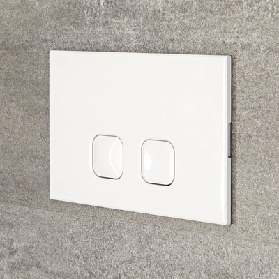 Cette plaque murale pour déclencher la chasse d'eau de votre WC suspendu, complétera esthétiquement votre installation et se fondra dans votre décor. Plaque de commande chasse d'eau WC. Double touche pour mécanisme 3/6L. Matériau plastique. Finition blanche. Pour bâti support à actionnement frontal. Conçu pour toilettes WC suspendus.