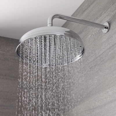 Luxe d'un tomber de l'eau en pluie parfaitement enveloppant avec cette ample pomme de douche de design rétro et de qualité haut de gamme, idéale dans une salle de bains d'inspiration vintage. Pomme de douche ronde 30cm. Structure fixe tête non orientable. Laiton massif chromé. Design rétro. Facile d'entretien. Livrée sans bras. Filetage de 15mm. Conforme au standard de plomberie 15/21. Dimensions complètes sous la photo. Garantie 10 ans.