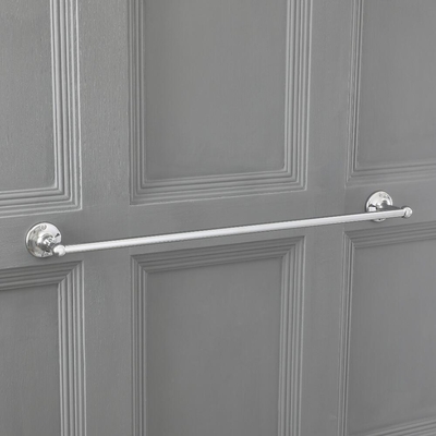 Ce porte-serviette chromé allie un style classique remarquable, à une fonctionnalité superbe. Fabriqué en laiton haut de gamme, afin de résister à l'épreuve du temps, ce porte-serviette élégant bénéficie d'un design simple, associé à une belle longueur pour vous fournir beaucoup d'espace de rangement pour vos serviettes de bain. Acier inoxydable. Finition chromée durable. Design classique. Livré avec vis et chevilles pour fixation au mur. 63.5cm de long.