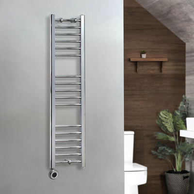 Apportez une touche moderne à votre salle de bain et appréciez vos serviettes chaudes en tout temps avec le sèche-serviettes électrique Kent. Cette gamme fait partie de la famille de sèche-serviettes électriques ECOSO par Hudson Reed.L’élément chauffant thermostatique Wi-Fi vous permet de contrôler n’importe quel appareil intelligent grâce à l’application ECOSO gratuite, et ce, depuis n’importe où. Parfaite touche finale à votre salle de bain, ce sèche-serviettes vous assure d’avoir des serviettes chaudes et sèches dès que vous le souhaitez, et ce, sans que vous ayez à allumer votre chauffage central. Fabriqué en acier de première qualité, il dispose d’un design en échelle moderne et plat et d’une finition chromée résistante. Il est prérempli d'une solution de chauffe à base d'eau appelée glycol. Cette solution, qui contient de l'antigel et de l'anticorrosion, élimine le bruit et la rouille. Caractéristiques: Finition chromée extrêmement résistante Dimensions: l. 30 cm x P 3 cm x H 120 cm...
