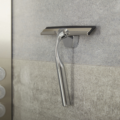 Vous pourrez désormais parfaire le nettoyage de votre espace douche avec cette raclette conçue pour éliminer l'eau résiduelle des parois de verre et du carrelage de votre espace douche. Vous pourrez ainsi limiter l'impact du calcaire sur vos surfaces et réduire l'humidité dans votre salle de bain en dirigeant l'eau vers votre évacuation. Le clip de rangement mural de ce modèle vous permet de faire place nette une fois son utilisation terminée. Caractéristiques: Matériau: acier inoxydable Finition chromée Design moderne Nettoyage simple sans traces Crochet de rangement à fixer au mur Chevilles et vis fournies Idéal pour une utilisation sur verre, miroir embué, carrelage, receveur et toute cabine de douche Garantie: 2 ans