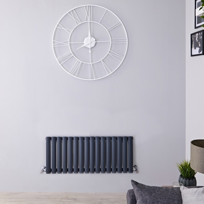Optez pour l'élégance intemporelle d'un radiateur horizontal, au design innovant de colonnes ovales, lequel embellira et optimisera votre espace de vie, quelle que soit la pièce où vous l'installerez sa qualité ne manquera pas de vous satisfaire. Radiateur horizontal design. Matériau: Acier haut de gamme. Peint anthracite. L. 100 x H.40 x Épaisseur 5.6cm. Entraxe de raccordement +/- 109cm. Du mur aux raccords +/- 4.7cm. Diamètres des filetages entrées et sorties 15mm. Composé de 17 colonnes ovales. Projection maximale du mur +/-8.6cm. 691 Watts {{custom Var code=WATTS_TOOLTIP}} Conçu uniquement pour chauffage central. Conforme à la norme EN 442 Fixations fournies. Livré sans robinets. Filetages adaptés aux robinets français. Garantie 20 ans.