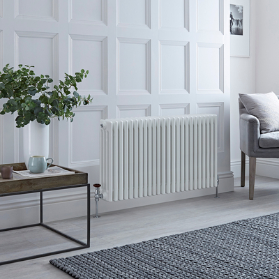 Le radiateur style fonte horizontal blanc à quatre rangs Windsor de 60 cm par 159, 5 cm. Doté d’un design rétro chic et d’une finition poudrée résistante, ce radiateur extrêmement résistant à l’usure"idienne vient transformer votre pièce en un espace chaleureux et accueillant, et ce, en un rien de temps. Associez-le à l’un de nos robinets de radiateur pour un fini soigné et harmonieux. Caractéristiques: Dimensions: l.159, 5 cm x P 13, 6 cm x H 60 cm Puissance: 2511 watts Quatre rangs Finition blanche de première qualité, extrêmement résistante aux traces de doigts et rayures La finition poudrée vous offre un rendu uniforme, esthétique et durable Puissance de chauffe élevée