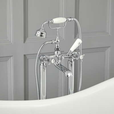 Ajoutez du luxe et de l’élégance dans votre salle de bain avec le mélangeur bain douche îlot rétro Elizabeth. Fabriqué en laiton massif pour assurer qualité et durabilité, ce robinet de bain douche est parfait pour être utilisé avec nos baignoires îlot de style rétro. Doté d’un design intemporel et de poignées croisillons faciles à utiliser, il sera la pièce maitresse de votre salle de bain et en complétera parfaitement son décor. Caractéristiques du mélanigeur bain douche îlot Elizabeth: Dimensions: L 19, 6 cm x P 16 cm x H 103 cm Beau design rétro pour un look classique et élégant Finition résistante chromée et blanche Fabriqué en laiton massif pour une durabilité garantie Poignées à levier pour un contrôle facile Convient à tous les systèmes de plomberie Intègre la technologie disques céramique 1/4 de tour pour prévenir les fuites et l’égouttement. Raccords flexibles 3/4" Pression d’eau minimale recommandée: 1, 0 bar Le robinet d'eau chaude tourne dans le sens des aiguilles d'une montre pour s...