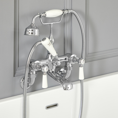 L'élégant mélangeur bain douche mural Elizabeth est le choix parfait pour votre salle de bain rétro. Fabriqué en laiton massif, ce robinet bain douche, accompagné de sa douchette, présente une finition classique chromée et blanche et un design intemporel. Sa conception murale libère de l'espace autour de la baignoire, créant ainsi une finition plus soignée. Associez-le à l'une de nos baignoires et à d'autres articles chromés et blancs de la collection Elizabeth pour une salle de bain sophistiquée et harmonieuse. Caractéristiques du mélangeur bain douche mural Elizabeth: Dimensions: L 19, 6 cm x P 20, 7 cm x H 32, 3 cm Beau design rétro pour un look classique et élégant Finition résistante chromée et blanche Fabriqué en laiton massif pour une durabilité garantie Commandes leviers pour un contrôle facile Poignées et détails en céramique Convient à tous les systèmes de plomberie Intègre la technologie disques céramique 1/4 de tour pour prévenir les fuites et l’égouttement. Raccord filetés 3/4" Pression...