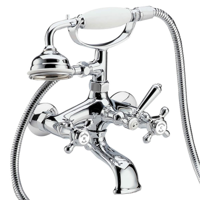 Cette robinetterie pour baignoire avec sa douchette pratique, peut être installée au mur ou sur la baignoire, avec le jeu de pieds fournis. Elle est aussi livrée avec deux jeux de poignées.