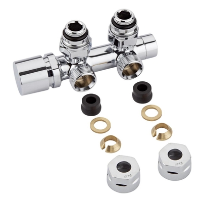 Ce robinet de radiateur d'angle présente une finition chromée. Il complétera l'installation d'un radiateur design ou d'un sèche-serviettes aux raccords centrés en leur bas. Il est fourni avec une paire d’adaptateurs pour une installation sur tuyauterie en cuivre de 12mm. Le contrôle mécanique de la température vous permet de faire des économies d’énergie et de réduire vos factures. Caractéristiques du robinet de radiateur d’angle: Matériau: laiton Finition: chromé Design moderne Raccordement central Raccord radiateur fileté standard de 1/2’’– convient à tous les radiateurs et sèche-serviettes Fourni avec une paire d’adaptateurs laiton pour tuyauterie en cuivre de 12 mm Garantie: 2 ans