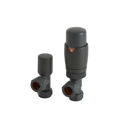 Dimensions: l. 5 cm x P 4 cm x H 12, 2 cm Finition grise contemporaine La finition poudrée vous offre un rendu uniforme, esthétique et durable Fabriqué en laiton durable Contrôle thermostatique de la température Design d’angle moderne Raccord radiateur fileté standard de 1/2’’– convient à tous nos radiateurs et sèche-serviettes Raccord d’entrée de 15 mm pour tuyaux en cuivre Comprend un robinet the...