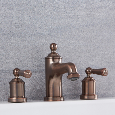 Dimensions: l. 20 cm x P 12 cm x H 14, 1 cm Design rétro pour un look élégant et intemporel Fabriqué en laiton massif durable à la finition résistante bronze huilé Convient pour une utilisation avec nos lavabos à trois trous pour la robinetterie Équipé de disques ¼ de tour en céramique