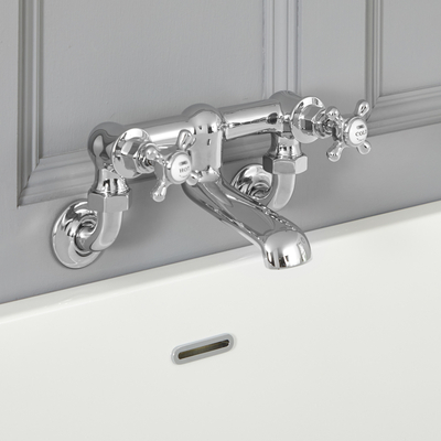 Le robinet baignoire mural à tête en croisillon apportera de l'élégance rétro à votre salle de bain. Fabriqué en laiton massif, ce mélangeur de baignoire est doté d’une finition chromée et blanche et d’un design mural pour vous offrir un rendu épuré. Associez-le à d'autres articles chromés et blancs de la collection Elizabeth pour une salle de bain sophistiquée et harmonieuse. Caractéristiques du robinet baignoire mural pour Elizabeth: