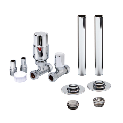Ajoutez les derniers détails à votre nouveau radiateur ou porte-serviettes chauffant avec les robinets de radiateur droits. Ces robinets de radiateur présentent un design moderne et une finition résistante. Ils ont un filetage standard de 1/2'' et peuvent donc être utilisés avec tous les radiateurs et porte-serviettes chauffants. Le kit de tuyauterie crée un aspect coordonné avec les robinets de radiateur et assure une connexion nette et ordonnée entre l'entrée du robinet du radiateur et le sol. Caractéristiques: Finition chromée de haute qualité Fabriqué en laiton Régulation thermostatique de la température Raccordement standard à filetage de ½ pouce Raccord d’entrée de 1, 5 cm pour tuyaux en cuivre Deux brides d’un diamètre de 5 cm pour un montage au sol Conçu pour une utilisation avec une tuyauterie de 15mm de diamètre maximum Fourni en paire Qu’est-ce qui est inclus ? Paire de robinets de radiateur droits thermostatique et coude de réglage Bouchons d'obturation et de purge Tuyau x 2 et brides...