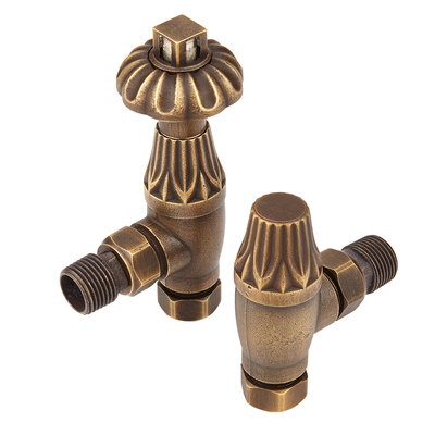 Le style antique de cette paire de robinets pour radiateur ou sèche-serviette s’harmonisera parfaitement avec un intérieur rétro. Leur design vintage et authentique est accentué par une finition en laiton vieilli. Ces robinets thermostatiques vous permettent de réduire vos factures d’énergie par un meilleur contrôle de la température qui évite toute consommation d’énergie superflue. Associez-les à la tuyauterie en bronze patiné pour compléter le look. Caractéristiques de la paire de robinets: :1 Robinet d'angle thermostatique 1 tête simple d'angle Fabriqué en laiton durable Finition bronze Dimensions complètes: Schéma sous la photo Garantie: 2 ans Informations d'installation: Raccord d’entrée de 15 mm pour tuyaux en cuivre Raccord radiateur fileté standard de 1/2’’– convient à tous les radiateurs et sèche-serviettes Adaptation possible aux tuyauteries françaises. Consultez votre plombier.