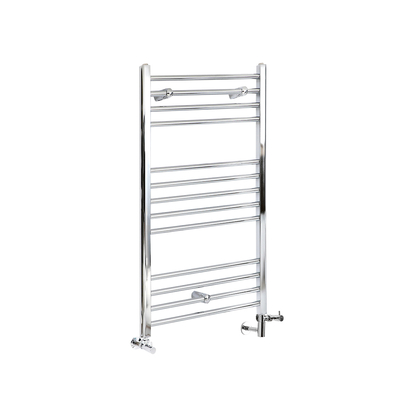 Ajoutez une touche chic et fonctionnelle dans votre salle de bain avec le sèche-serviettes mixte Kent, de 100 cm par 60 cm. Ce sèche-serviettes est fourni avec une paire de robinets de radiateur d’angle, un élément électrique chauffant et un adaptateur en forme de « t ». Il vous permettra d’alterner entre chauffage central et électrique. L’élément électrique fourni s’autorégule afin de maintenir une température constante et d'éviter la surchauffe. Tout ce dont vous aurez besoin pour finaliser l’installation de votre sèche-serviettes est un thermostat externe (il n’y a pas d’interrupteur marche/arrêt sur le corps du sèche-serviettes). Le cache câble illustré peut être trouvé séparément dans les extras essentiels. Fabriqué en acier de qualité supérieure, ce sèche-serviettes chauffant Kent à la finition chromée résistante et au design en échelle est le produit parfait pour optimiser au maximum l’espace de votre salle de bain. Caractéristiques: 100 cm x 60 cm x 3 cm Puissance: 297 watts De...