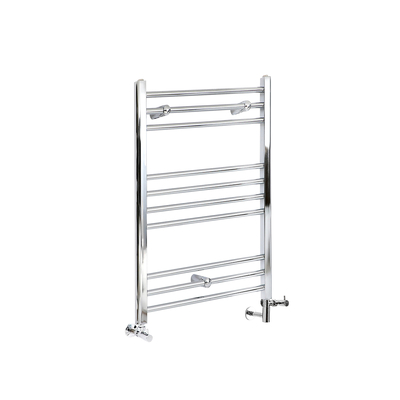 Ajoutez une touche chic et fonctionnelle dans votre salle de bain avec le sèche-serviettes mixte Kent, de 80 cm par 60 cm. Ce sèche-serviettes est fourni avec une paire de robinets de radiateur d’angle, un élément électrique chauffant et un adaptateur en forme de « t ». Il vous permettra d’alterner entre chauffage central et électrique. L’élément électrique fourni s’autorégule afin de maintenir une température constante et d'éviter la surchauffe. Tout ce dont vous aurez besoin pour finaliser l’installation de votre sèche-serviettes est un thermostat externe (il n’y a pas d’interrupteur marche/arrêt sur le corps du sèche-serviettes). Le cache câble illustré peut être trouvé séparément dans les extras essentiels. Fabriqué en acier de qualité supérieure, ce sèche-serviettes chauffant Kent à la finition chromée résistante et au design en échelle est le produit parfait pour optimiser au maximum l’espace de votre salle de bain. Caractéristiques du sèche-serviettes mixte: 80 cm x 60 cm x 3 cm...