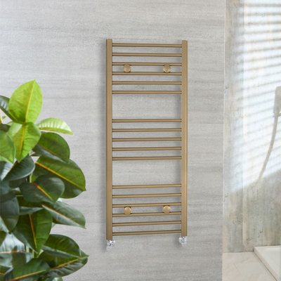 Ajoutez une touche contemporaine à votre salle de bain avec le sèche-serviettes laiton naturel Ive. Venant apporter une touche audacieuse et élégante à votre pièce, ce sèche-serviettes dispose d’une finition poudrée laiton naturel résistante et est fabriqué en acier de première qualité, vous offrant une solution à la fois pratique et jolie pour garder vos serviettes sèches et chaudes. Choisissez parmi notre large gamme de robinets de radiateur pour un fini soigné et harmonieux. Caractéristiques du sèche-serviettes Ive: Dimensions: 120 cm x 50 cm x 3 cm Puissance: 478 watts Finition poudrée laiton naturel résistante Fabriqué en acier de première qualité Conforme à la norme EN442 Garantie: 10 ans Qu’est-ce qui est inclus supports muraux Chevilles de fixation Bouchon obturateur et purgeur