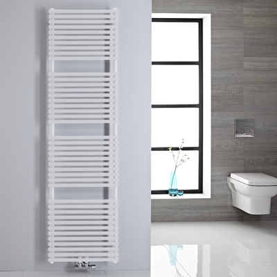 Fabriqué en acier peint blanc haut de gamme, ce sèche-serviettes de design classique représente une solution de chauffage idéale pour toutes les salles de bain et le plaisir d'avoir à disposition des serviettes éponges toujours agréablement douches et chaudes.Sèche-serviettes H. 182, 3 x L. 50cm.À installer verticalement. Matériau: Acier. Épaisseur 1.5mm. Peint blanc RAL 9016.À alimenter en eau chaude exclusivement. Projection du mur +/-8cm. Connexions
