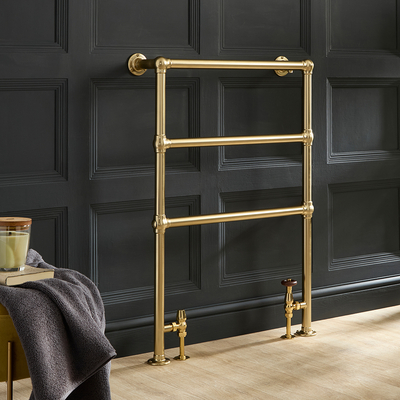 Le sèche-serviettes rétro minimaliste or satiné Selina de 96, 6 cm par 67, 3 cm allie parfaitement élégance et fonctionnalité. Fabriqué en acier haut de gamme et durable, il est doté d’une finition or satiné résistante, apportant un style vintage à votre salle de bain. Alimenté par votre chauffage central, il assure que vos serviettes soient chaudes en un rien de temps et il offre un espace pratique pour les ranger. Ce sèche-serviettes s’associera idéalement avec les douches et la robinetterie Elizabeth, et créera un look rétro et une salle de bain parfaitement harmonieuse. Caractéristiques: Dimensions: 96, 6 cm x 67, 3 cm x 16, 5 cm Puissance: 223 watts Finition résistante or satiné Fabriqué en acier de première qualité durable Design rétro pour un look élégant et intemporel Conforme à la norme EN 442 Fabricant agréé: ISO9001:2015 Qu’est-ce qui est inclus ? Fixations murales Chevilles murales Bouchon obturateur et purgeur Vous aurez également besoin de: {{custom Var code=ESSENTIAL_EXTRAS_LINK}} Robin...