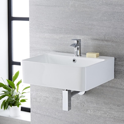 Ajoutez une touche moderne et élégante à votre salle de bain avec la vasque rectangulaire blanche suspendue Exton de 52 cm par 42 cm, complétée par une bague de trop-plein chromée. Fabriquée en céramique de qualité à la finition blanche brillante facile à nettoyer, elle viendra créer un look chic et contemporain dans votre intérieur tout en optimisant votre espace. Elle dispose d’un vaste espace pour vous laver et est pré-percée d’un trou pour la robinetterie ce qui la rend parfaite pour nos mitigeurs monotrou. Associez-la à d’autres articles de la gamme Exton pour un fini soigné et harmonieux. Caractéristiques: Dimensions: l. 52 cm x P 42 cm x H 15, 5 cm Fabriquée en céramique de qualité à la finition blanche brillante facile à nettoyer Pour une installation murale – optimise votre espace Pré-percé d’un trou pour la robinetterie et avec trop-plein Bague de trop-plein chromée Certifié EN14688 Qu’est-ce qui est inclus ? Kit de fixation mural Vous aurez également besoin de: {{custom Var code=ESS...