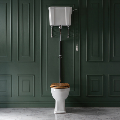 Ajoutez une touche rétro et authentique à votre salle de bain avec le WC Richmond, fourni avec un kit pour chasse d’eau, un abattant et un réservoir haut. Avec ses supports ornés et ses beaux détails rétro, le WC Richmond est sûr d'embellir votre salle de bains et d’y ajouter une touche d’élégance. La longue chaîne et la poignée en céramique, qui permettent d’actionner la chasse d’eau, ajouteront encore plus de cachet à votre décoration. Associez votre WC à d’autres articles de la collection Richmond pour créer une salle de bain au look coordonné et harmonieux. Caractéristiques du WC Richmond: Kit pour chasse d'eau chromé Abattant WC effet chêne Dimensions WC: l. 47, 4 cm x P 62, 25cm x H 214 cm Hauteur de la cuvette: 39, 5 cm Réservoir haut avec tuyauterie de raccordement, chaîne et poignée d’actionnement et supports muraux Céramique résistante à la finition émaillée et facile à nettoyer Abattant WC durable fabriqué en bois d’ingénierie L'abattant dispose de charnières chromées Fourni avec un kit...