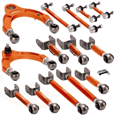 Introduction Control Arms are constructed of a Aluminium AIloywhich is able to withstand the stresses of extreme competition these arms are powder coated. Polyurethane bushingsprovide freedom of movement with minimum bind while eliminating all slop unlike factory molded rubber bushings which will not only increase vehicle dynamic response but also allow the shocks & springs to absorb more road forces. Reverse threaded, turnbuckle style assembly allows for ease of adjustment on the vehicle without requiring removal. Adjustablehigh-performance suspension parts Compatible for tesla model 3replaces the fixed factory control arms to allow for precise, independent adjustments. All hardware is treated to help prevent corrosion during the harshest weather condition Application Compatible for Tesla Model 3 2017+