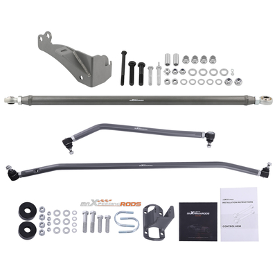 Includes::- 1x Heavy Duty Carbon Steel Adjustable Track bar- 1x Bracket (6mm thickness)- 5x Bolts (1x Combination bolt / 4x Hexagon head bolts)- 2x Bushings- Several gaskets- 1x Adjustable Drag Link Bar- 1x Adjustable Tie Rod Bar- 1x Tie Rod Stabilizer Clamp & require hardware Feature- This heavy-duty steering kit is larger, stronger, & a bolt-on replacement for the stock steering. No drilling or ream-ing of the knuckle is required.- Adjustable straps allow you to precisely center your shafts under your compatible. This improves drivability, comfort & handling.- Fine ad...