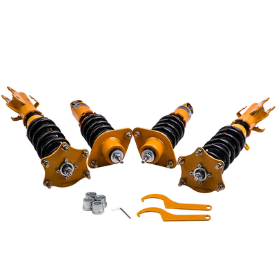 Colour: Golden Warranty: one year warranty for any manufacturing defect Feature- Adjustable ride height- Adjustable pre-load spring tension- Pillow ball top mount -- this design helps combat noise while tuning. It also improves the steering feel & response- All inserts come with fitted rubber boots to protect the damper & keep clean.- Improve your handling performance without sacrifice comfortable ride.-A fast & affordable way to easily upgrade your car's appearance.- Easy installation with right tools.- Ideal for any track, drift & fast road & can also be used for daily driving.-Most components are made from 6061 aluminum with T6 for increased hardness -- the advantages include excellent strength, & aluminum helps keep the weight down. -Hi tensile performance spring