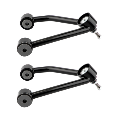 steel Bushing: Thickened high-quality polyurethane bushing 2. Surface finish:powder-coated finish 3. Lift height: 2-4" Lift 4. Package dimension: 33.8*17.9*35.8cm 5. Weight: 8150g 6. Placement on Vehicle: Front, Left, Right, Upper Feature 2* front upper control arms Note 1. Thickened high-quality polyurethane bushing with oil injection nozzle, easy to lubricate, & longer service life. 2. Polyurethane bushings strengthen the connection points in automotive suspension components, reduce the slope, & thus increase the responsiveness & feel of the car to the road. 3. The ball head adopts hardened steel balls & steel sleeves, which are more sturdy & durable 4. They are harder & more durable because they are made from steel & coated with industrial p...