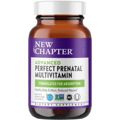 Our award-winning prenatal vitamin delivers essential nutrients & tummy-soothing Ginger to support mom 's wellness & baby 's healthy development.* 3 tablets a day for sustained nutrition. Formulated for Absorption. Healthy Baby & Mom, Reduced Nausea*. New Chapter Advanced Perfect Prenatal Multivitamin (48 count).