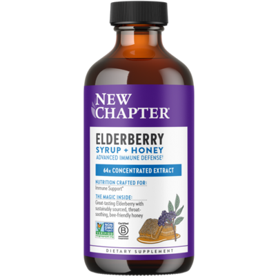 Experience advanced immune defense with clinically studied Black Elderberry in a delicious syrup. Our 64x concentrated Elderberry extract is loaded with beneficial antioxidants & sweetened naturally with throat-soothing, bee-friendly honey*. 64x Concentrated Extract. Immune Support*. New Chapter Elderberry Syrup + Honey Herbal Supplement (24 Servings).