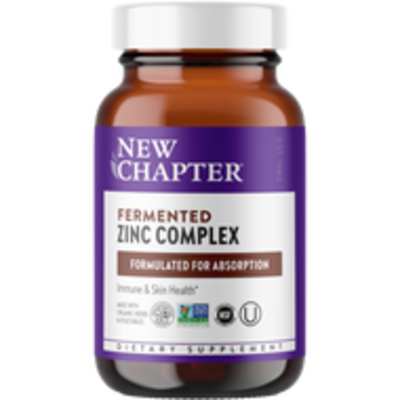 Bioavailable fermented Zinc supports healthy immune system function and supports skin health and resilience.* Blended with superfood herbs including Elderberry. 1.6x BETTER ABSORBED. Immune & Skin Health. New Chapter Fermented Zinc Complex (90 count).
