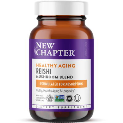 Formerly known as Life Shield Reishi. Experience healthy aging with our Reishi mushroom supplement for vitality, longevity, & overall wellness.* Reishi delivers the benefits of traditionally revered & extensively researched mushrooms in our 100% vegan capsule*. Formulated for Absorption. Vitality, Healthy Aging & Longevity*. New Chapter Healthy Aging: Reishi Mushroom Blend (60 count).