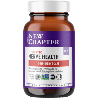 Invest in head-to-toe nerve health with fermented Vitamins B1, B6 & B12 that effectively fuel neuron activity, support healthy nerve-to-nerve transmission, & help protect healthy nerves*. 3-in-1 Nerve Care. Nourishes the Nervous System, Enhances Nerve Communication & Builds Nerve Insulation*. New Chapter Holistic Nerve Health (30 count).