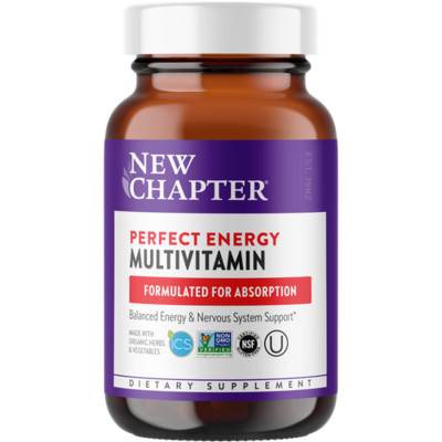 Daily multivitamin delivering 20 whole-food fermented vitamins and minerals to promote balanced energy and vitality*. Formulated for Absorption. Balanced Energy & Nervous System Support*. New Chapter Perfect Energy Multivitamin (96 count).