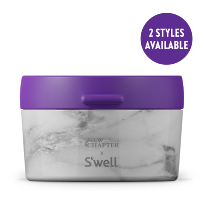 Store your favorite supplements in style with this sleek, stackable Vitamin Organizer. Stay well as you stay organized with S 'well 's signature finishes that imitate the bold charm of rich, natural materials. High-grade 18/8 stainless steel, BPA/BPS-free, 3-prong section divider, & soft-touch, easy-open lid. New Chapter x S’well Vitamin Organizer in White Marble.