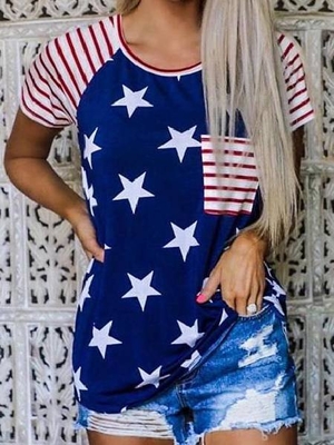 Blue Crew Neck Cotton Short Sleeve Letter T-Shirts is fashionable & cheap, come to Noracora to find out about the Clothing