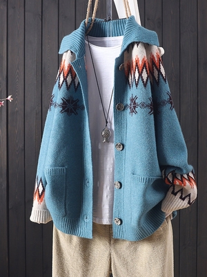 Blue Long Sleeve Tribal Cardigans is fashionable & cheap, come to Noracora to find out about the Clothing