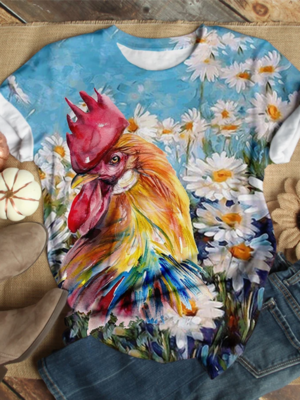 Blue Printed Cotton-Blend Short Sleeve T-Shirts is fashionable & cheap, come to Noracora to find out about the Clothing