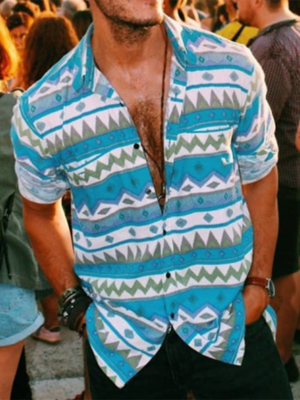 Blue Printed Shirt Collar Casual Men-Shirts is fashionable & cheap, come to Noracora to find out about the Clothing