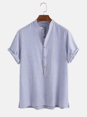 Blue Shirt Collar Printed Basic Men-Shirts is fashionable & cheap, come to Noracora to find out about the Clothing