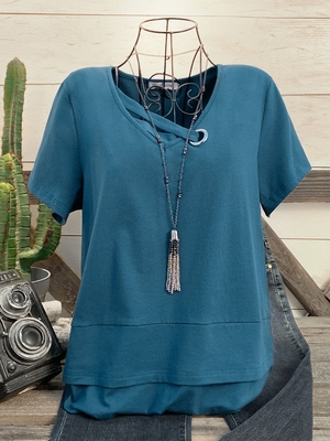 Boho Cutout Crew Neck T-Shirts is fashionable & cheap, come to Noracora to find out about the Clothing