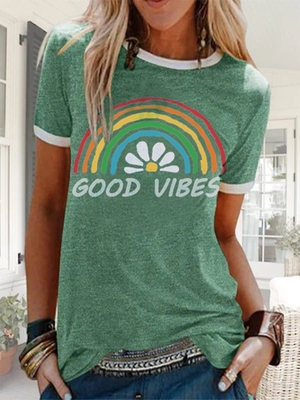 Casual Crew Neck Shift Printed T-Shirts is fashionable & cheap, come to Noracora to find out about the Clothing