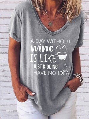 Casual Letter Cotton-Blend V Neck Women is fashionable & cheap, come to Noracora to find out about the Clothing