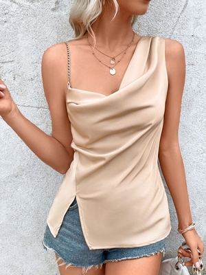 Noracora offers stylish & concessional Tank Tops.. SPU: E5JTA2O9823, Colour: Khaki, Neckline: Spaghetti, Edition type: Regular Fit.