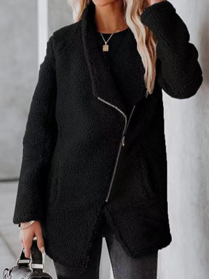 Casual Plain Winter Vacation Long Sleeve Shawl Collar Lambswool
