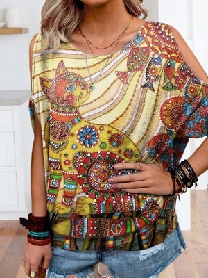 Casual Short Sleeve Animal Cotton T-Shirts is fashionable & cheap, come to Noracora to find out about the Clothing