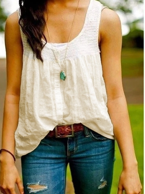 Casual Solid Cotton Scoop Neckline Auto-Clearance is fashionable & cheap, come to Noracora to find out about the Clothing ...