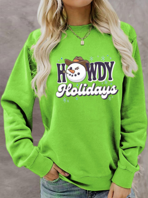 Casual Spring/Fall Christmas Snowman Daily Loose Jersey Crew Neck