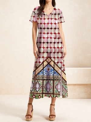 Buy Inexpensive Dresses at Noracora online store, SPU: E51TDR1RC3E5, Colour: Pink, Thickness: Regular, Pattern: Church Glass.