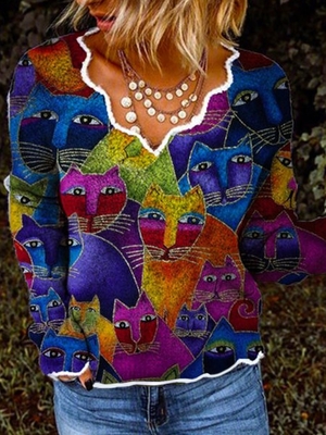 Casual V Neck Long Sleeve Animal Sweater is fashionable & cheap, come to Noracora to find out about the Clothing